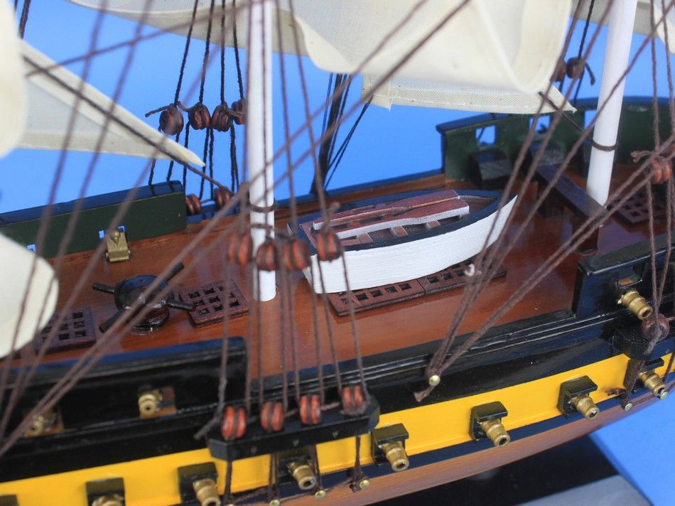 Fine craftsmanship and attention to detail highlight this scale tall model ship replica of HMS Surprise, the ship made famous in Patrick O’Brian’s Aubrey-Maturin series and the film Master and Commander: Far Side of the World with Russel Crowe. Whether seated upon a shelf, desk or table, these HMS Surprise tall ship models proudly displays their exquisitely-crafted features and indomitable historic, patriotic and adventurous spirit.
