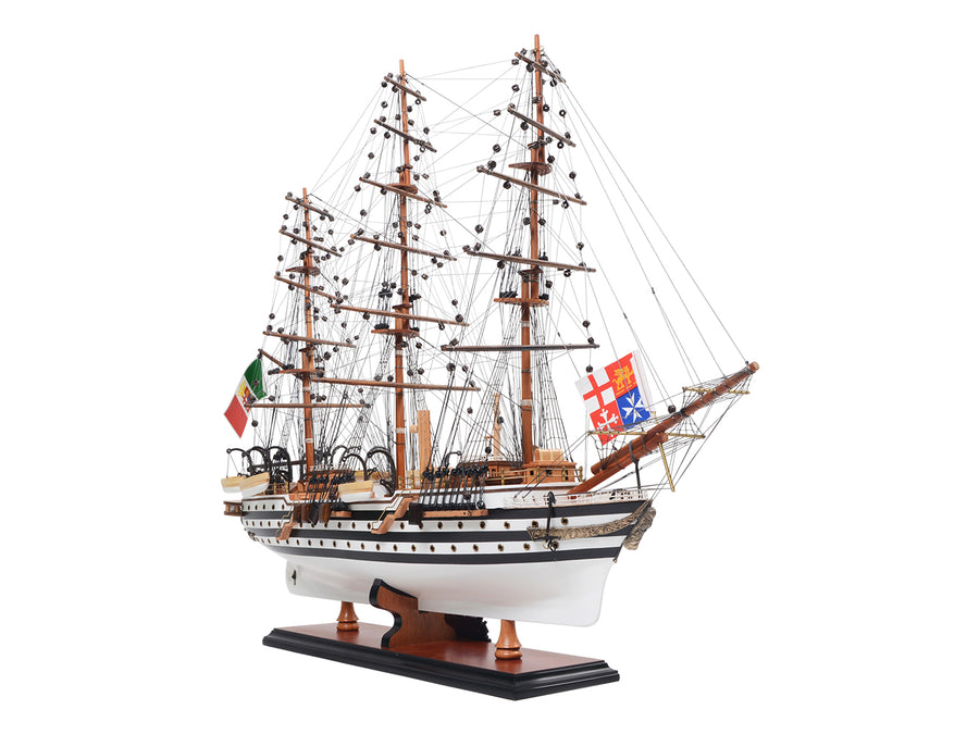 Display this beautiful ship right in your own home or office! The Amerigo Vespucci, built in 1930 at Naval Shipyard of Castellammare di Stabia, is available as a museum-quality, FULLY ASSEMBLED model. Master craftsmen using historical photographs, drawings or original plans meticulously handcraft these highly detailed wood models from scratch.