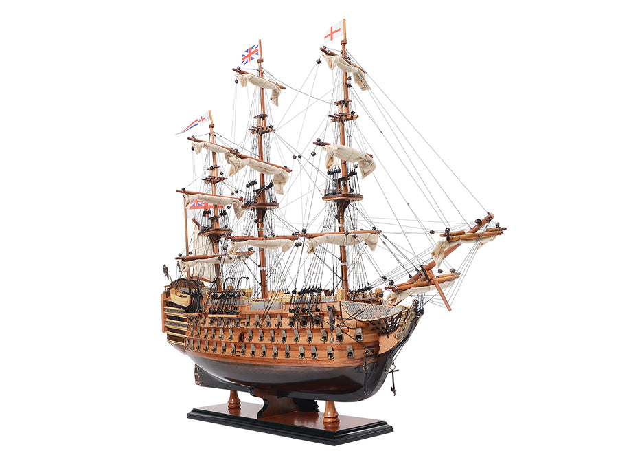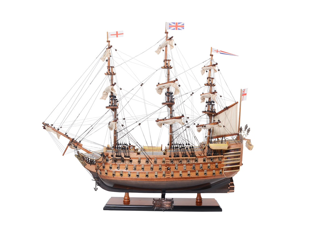 H.M.S. Victory, Adm. Horatio Nelson’s flagship at the Battle of Trafalgar in 1805, is now available as a museum-quality, FULLY ASSEMBLED model. Each one has a unique serial number etched into the hull, which allows us to identify production date, material used and all other production information of a model.